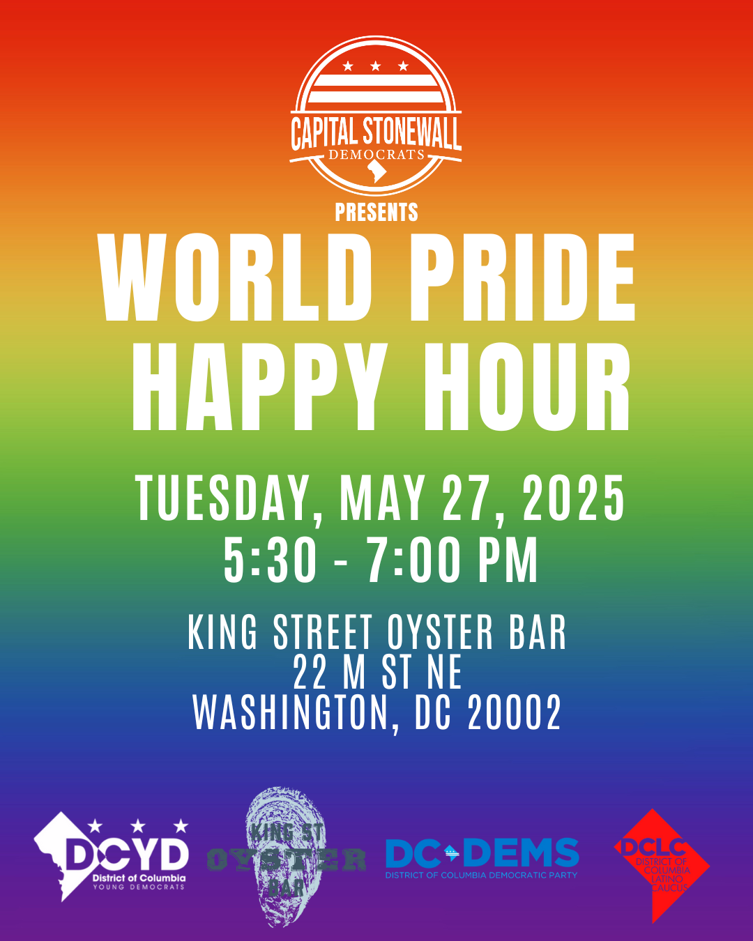 Capital Stonewall Democrats’ invites you to join us as we celebrate the start of World Pride in our city, Washington, DC!