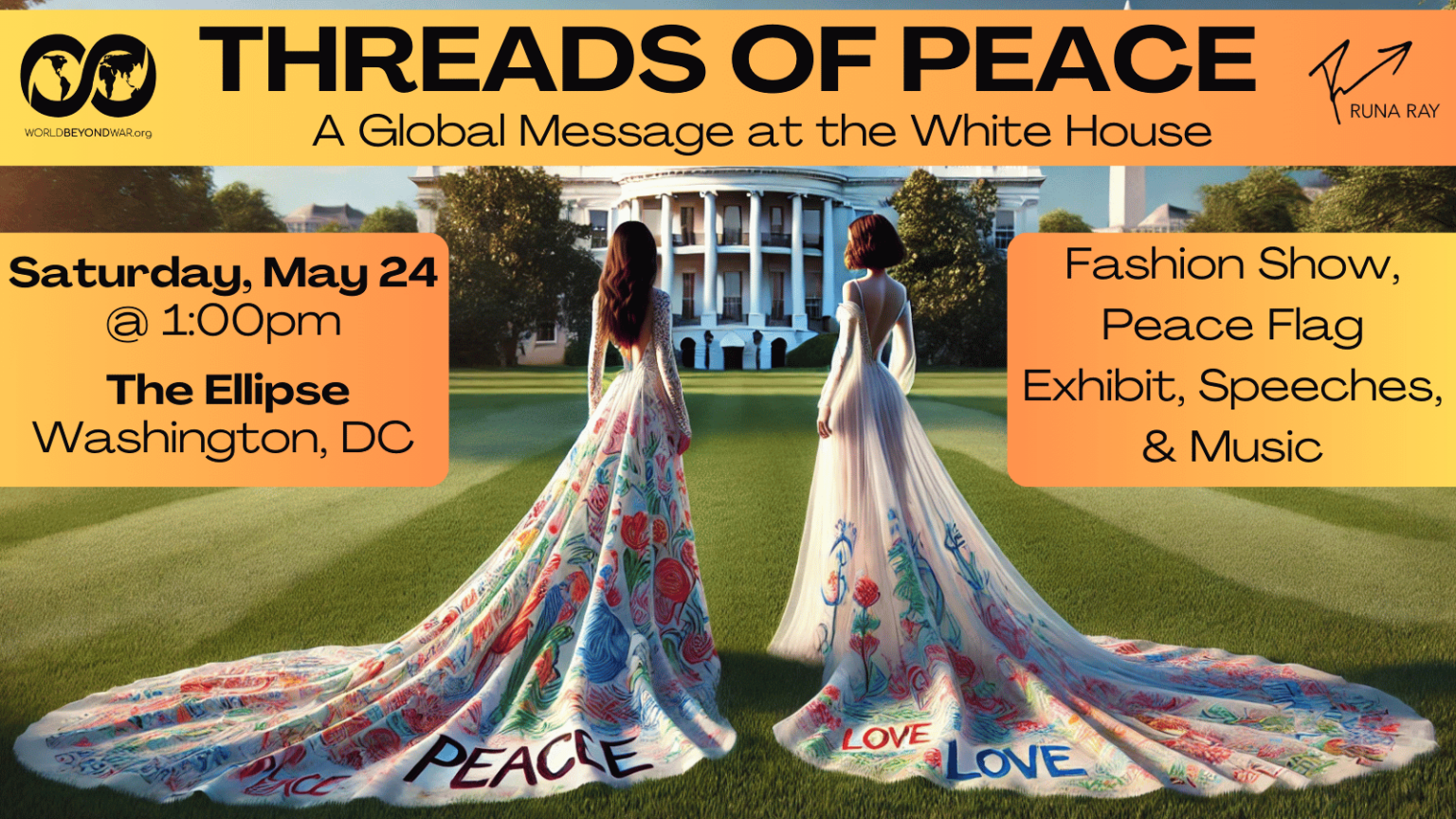 The Global Peace Flag project brings together 193 countries in a powerful display of global unity and commitment to peace. Now we’re taking it to The Ellipse in front of the White House during Memorial Day weekend. This event will include a fashion show and exhibit displaying the Peace Flags from around the world, plus music and speeches from notable anti-war voices.https://worldbeyondwar.org/peaceflag/
